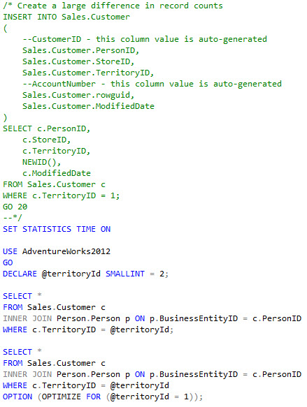 The other method is to OPTIMIZE FOR UNKNOWN. Finally, we’ve caught up to the topic of this post. For this demo we will filter on PersonID because it has NULL values.