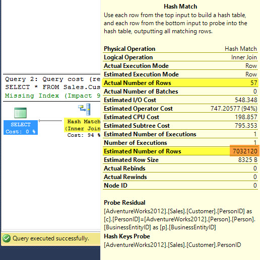 Here I’ve taken the Sales.Customer table in the AdventureWorks2012 and added a few million records with TerritoryID = 1. Then we can look at the execution plans.