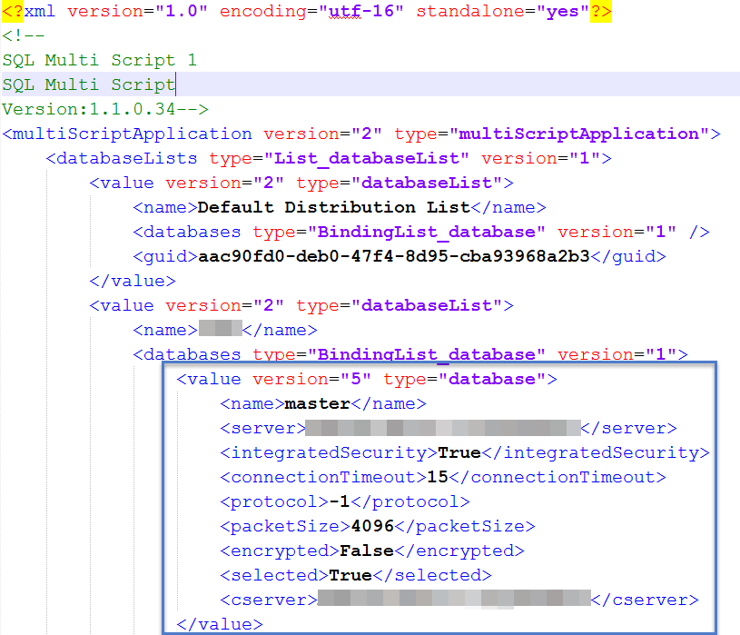 SQL Multi Script saves the server entries for your distribution lists in XML format in an Application.dat file.