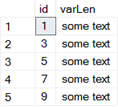 To create some forward pointers we will update all of our rows and increase the length of the varLen column.